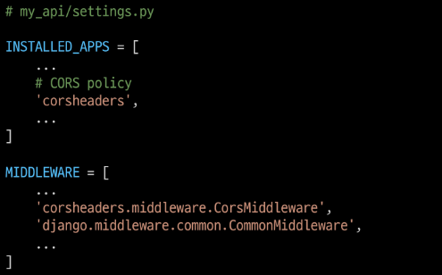โ CorsMiddleware๋ ๊ฐ๋ฅํ CommonMiddleware๋ณด๋ค ๋จผ์ ์ ์๋์ด์ผ ํ๋ค.