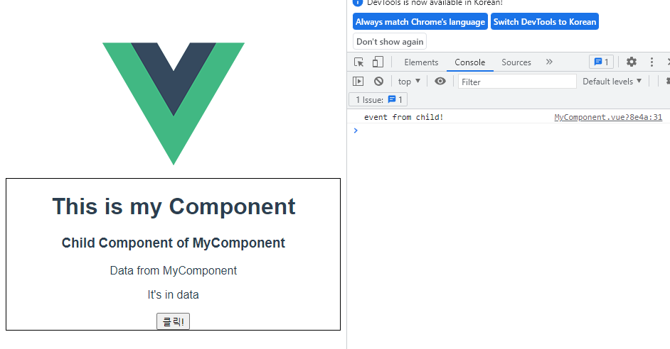 <button @click="childToParent">ํด๋ฆญ!</button>